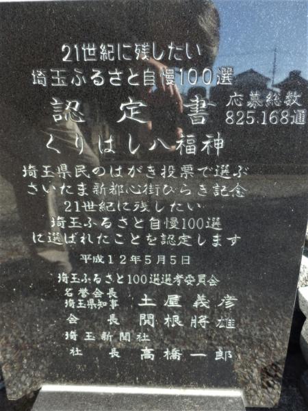 埼玉ふるさと自慢100選『くりはし八福神』認定碑(各八福神の側に設置されています)