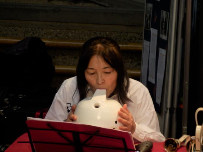 市役所内市民ラウンジで月一で行われるランチタイムコンサートを鑑賞してきました、今月はアイリッシュハープ・クワイアチャイム・オカリナ・ハンドベルを使用した音楽。特にバレーボール大のオカリナがあり北海道に生息しているシマフク…