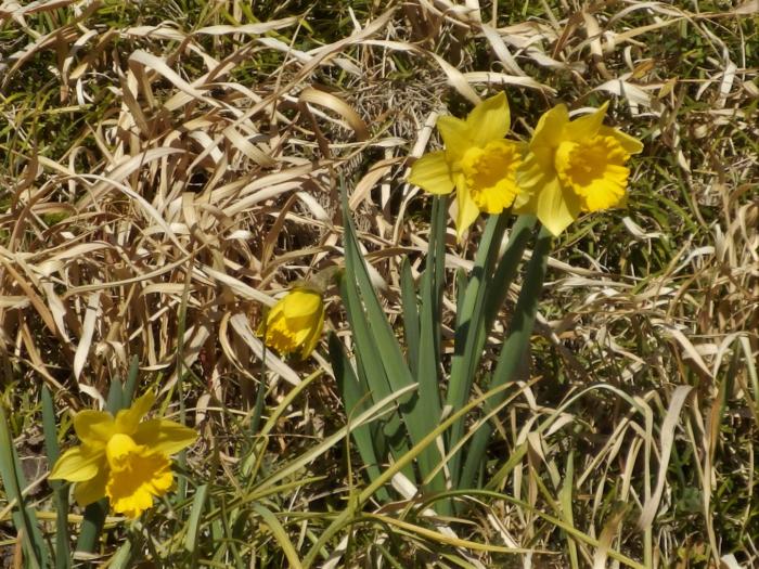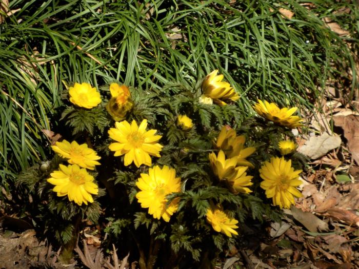 アイキャッチ画像は内牧公園近くの民家の庭に満開に群生していた「福寿草」