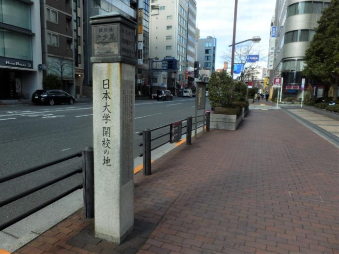 歴史のプロムナード(飯田橋散歩路) 目白通り沿いに様々な歴史標柱が設置され、日本大学開校の地・甲武鉄道飯田橋駅跡・日本赤十字社跡等になります