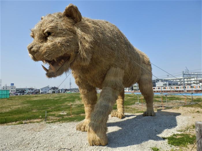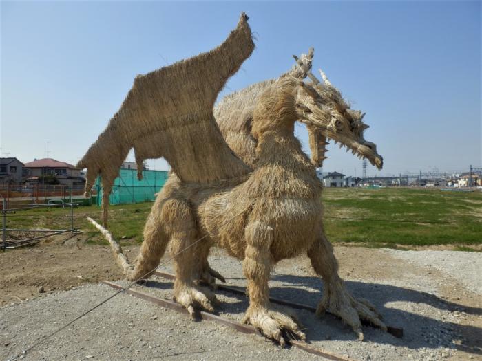 宮代町が取り組む「農」のあるまちつくりの象徴と言える田園をイメージする藁をつかい、コスプレイヤーに人気のドラゴンと東武動物公園の人気者ホワイトタイガーをモチーフにし作られています。東武動物公園駅西口前にあります。(宮代町進修館はコスプレイヤーの聖地です)