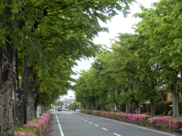 アイキャッチ画像は欅の新録とツツジで彩られている中央通り