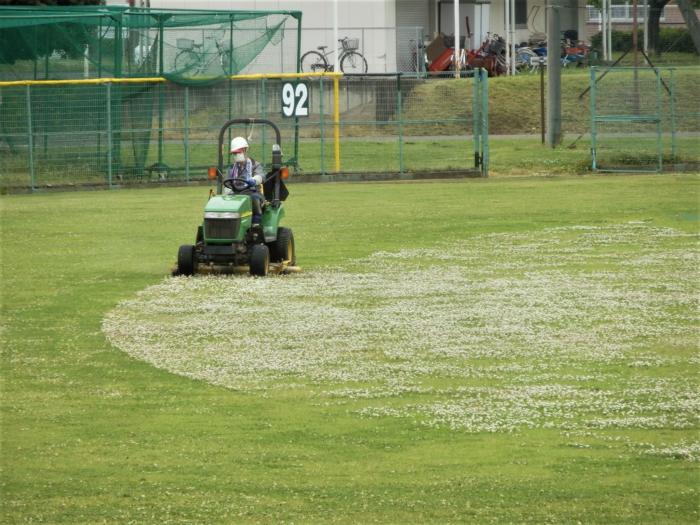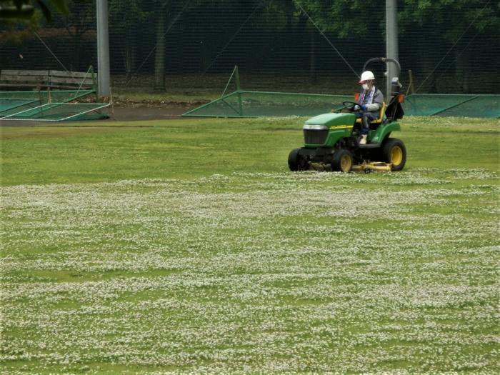 2020.05.21 村田 均 akasaka 春の名残り お散歩をしながら宮代町和戸にある総合運動公園まで行って来ました、公園内にある球場外野一面を白く染めている「シロツメクサ」を芝刈り機で円を描くように刈り取り作業をしていたのが面白かったので撮って来ましたので紹介致します。 「シロツメクサ」別名 オランダゲンゲ・クローバー 牧草や緑肥として重要で、グランドカバーとしても活用されている植物、干草にしてガラス器具を輸送する時の詰め物に利用していた所から名前がついたと言われています。 1 個のコメント 一枚目が、くっきり丸い刈り跡が 分かりますね! 丸く刈って行くんですね! 知らなかった! 返信する コメントを残す コメントをキャンセルメールアドレスが公開されることはありません。 ※ が付いている欄は必須項目ですコメント ※ 名前 メール サイト 次回のコメントで使用するためブラウザーに自分の名前、メールアドレス、サイトを保存する。