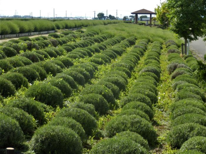 毎年6月に行われる久喜市(旧菖蒲町)の「あやめ・ラベンダーブルーフェスティバル」が新型コロナ感染防止のため今年は中止になりました、その関係で人が集まらないように5月20日頃にラベンダー・アヤメの開花前剪定が行われ花芽を摘んでしまいました、剪定された跡がどの様になっているか気になりましたので昨日ママチャリ散策を兼ねて様子を観に行って来ました、ラベンターの種類によっては剪定後に二番芽の花が多少咲き始めていました。