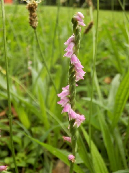 久喜菖蒲公園で見つけた変わった野草『ねじばな』花茎の上部に、花をらせん状につけるのでこの名がついた。らせん状のねじれは右巻き、左巻きの何方もあり、ランの仲間です。