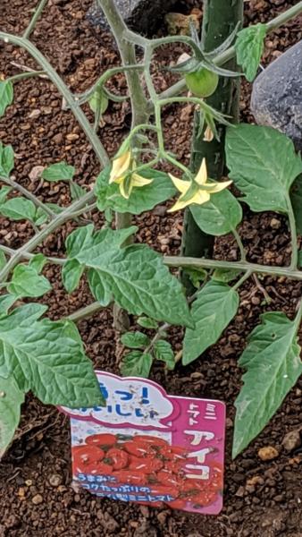 ミニトマトが2つ実をつけました! 花も2つ! ペアで! ウフフ! まだ青いうちから!! イイな! 女神とペアにならたい! またゲームの予定もはいったし! 少しづつ生活リズムが変わって! ゴーヤも少し伸びて 巻き巻きしそう…