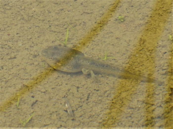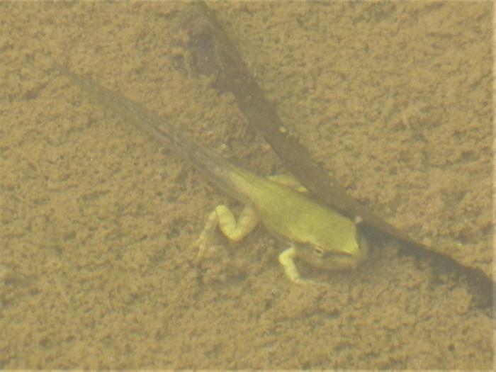 何時も散歩の時に立寄る田んぼで発見、間もなく (一週間前後) 上陸しそうなカエルになりかけの個体がありましたので思わず写真を撮りました、前回同様水面下の為写真が鮮明でなく済みません。産卵時季のズレで成長のスピードにかなり…