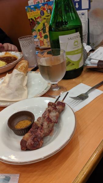 はじめ生ビールを一杯。次からワインです。ひとこと 言わせてもらうと、グラスがプラスチックで かるーすぎるんだよな。