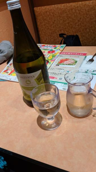 老人会のイベント補助金のネタと言うか なんと言うか〜〜 ヨーカドーに行ってサイゼリヤで 昼酒を╮(^▽^)╭ この焼き鳥みたいなやつは 必ずたのみます! セコくスバイスを! もちろん酒はおしゃれにワイン! 安いし量が多い…