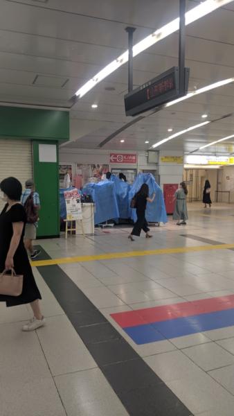 残念ながら夜の街ではなく 朝の駅地下街! よく有る外のイベント販売ですが こんな外のイベント販売にも 仕切りが有るんですね! 今の数字を見ると〜〜 仕方ないですね(╯︵╰,) 残念ながら夜の街には行かないで…