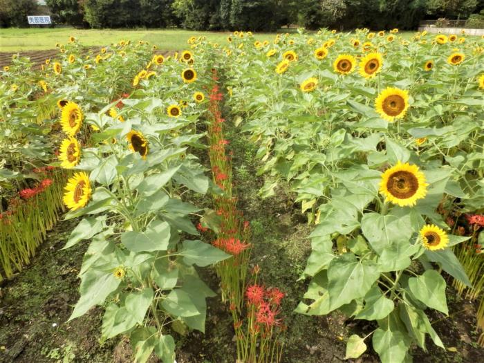 アイキャッチ画像は曼殊沙華越しに向日葵を望みます。