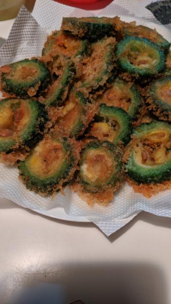 輪切りのゴーヤに唐揚げ粉で
