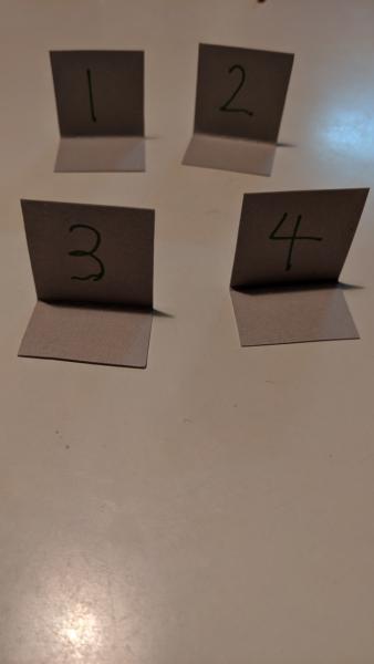 4個は折り紙を4つに分けて