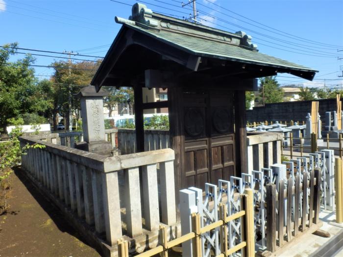 穴山梅雪の妻であった「見性院」の墓所 (門には葵の御門がついています)