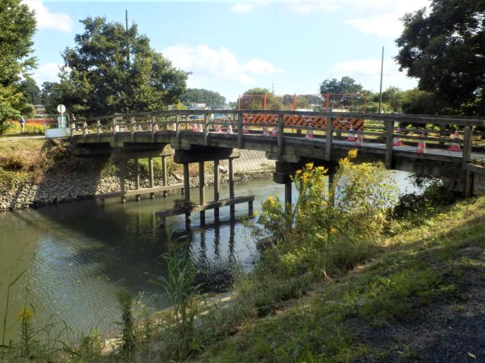 芝川に架かる木造の「桜橋」改修中