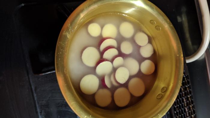 炊き込みご飯じゃない普通の 白米だけも! 特に何もしないでタイマーだけで ガスにかけてほっておくだけで! 合わせて辛子漬け! ウーン 不味くはないでしたね
