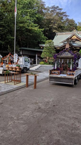 昨日の雨から一転の晴れて! 晴れて! 八幡神社の神輿 稲荷神社の神輿 市内神輿渡御に無事出発しました 見送りを寺田君としました! 誰かと会うのも2月以来かも(╯︵╰,) 早く悪疫退散にならないかな!