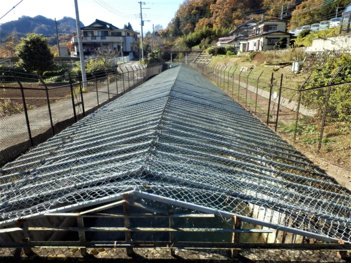 通常地中に埋めてあるハッ沢発電所まで送る水路菅が地上で見えている東京電力ハッ沢発電所第二号開渠