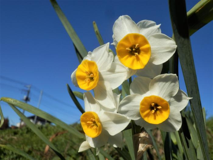 我が家の近くを流れる農業落川の役目を担っている備前堀川の両岸に自然に生えている水仙が花を咲かせてきました、陽当たりの良い場所から順に咲いてくるものですね、何枚か写真を撮りましたのでご紹介致します。 水仙の花言葉「私は美し…