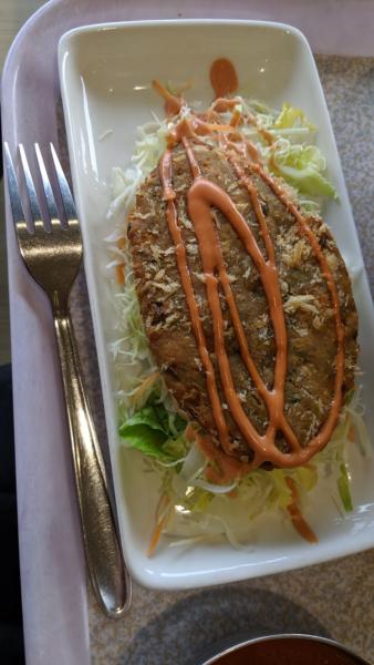 床板が剥がられテープで 応急処置していたんですが それも剥がられ ストーブのせいも有るんでしょうね ビバホームにコンパネと カーペットを買いに ついでに昼飯 けっこうな量! コロッケを付けたんですが これがデカイ! 味は…
