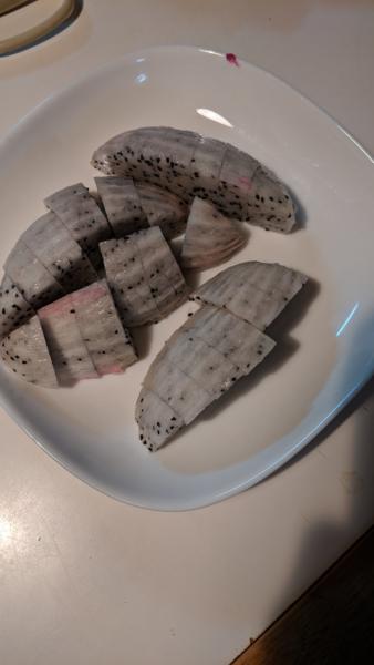2021.01.06 木村浩 akasaka 竜を喰らう! ドラゴンフルーツ! 50円!とは とりあえず竜を喰らう! う〜ん! 大して美味く無いですね(╯︵╰,) もちろん 4 件のコメント ドラゴンって未経験です。 皮を剥いてそのまま食べられるんですか? 名前が凄いですよね。 コロナに効果があったりすると 明るい希望 が見えてくるんだろうけどな。 返信する じつは俺も初めて食べました 50円と安かったんで ついつい買ってしまいました(╯︵╰,) 味はちょっと薄い感じですね どうも濃い味に慣れてしまいました 本当は薄い味がイイんでしょうね 高血圧が(༎ຶ ෴ ༎ຶ) 返信する 今度 安いのを見かけたら 僕も買ってみます。 返信する 以外に楽しいですよ あまりいろいろ見ないじゃないですか 必要な物を見るのが メインですからね! 安くなってるのは 何が有るか分からないですからね 返信する コメントを残す コメントをキャンセルメールアドレスが公開されることはありません。 ※ が付いている欄は必須項目ですコメント ※ 名前 メール サイト 次回のコメントで使用するためブラウザーに自分の名前、メールアドレス、サイトを保存する。