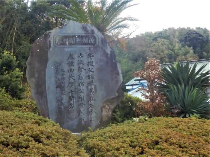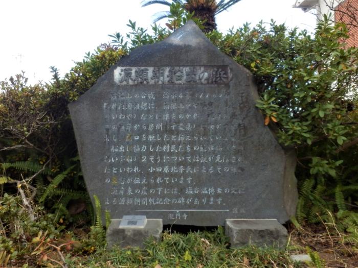 船出に協力した村民たちの鮫追舟等について書かれた「源頼朝開帆處の碑」