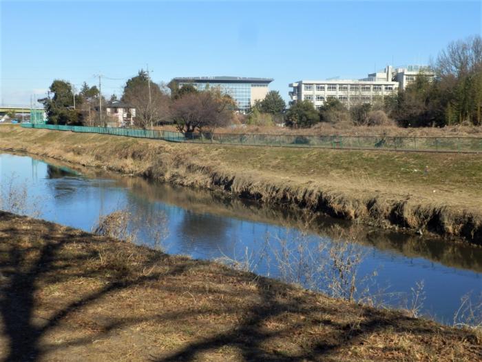最近、野球やサッカー等の強豪校になってきた昌平高校を古利根川越しに望む
