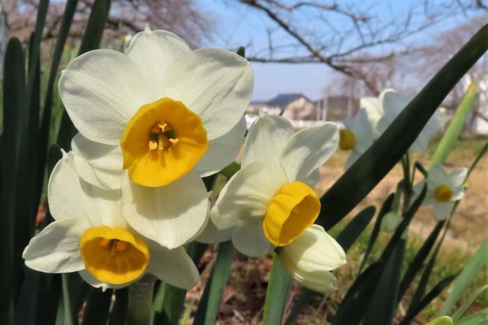 青毛堀川の土手に咲く水仙