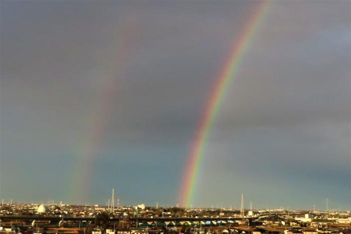 2021.02.15 村田 均 akasaka 虹の架け橋 悪天候の後晴天となり東の空に大きな二重の虹が輝きましたのでご紹介致します。 虹の左側「二重に見えます」 虹の右側「光の当たる角度の関係で少し薄く見えます」 5 件のコメント 確かによく写っている。素晴らしい。 返信する 同感です 熱写会!さすが! 最後の写真は 丸みでは無くて 天に昇る感じですね! イイですね 返信する 「虹の架け橋」、なかなか いいですね。詩人ですね。 この橋を渡りきった 向こう岸には 何が待っているでしょうね。 返信する ウフフ 秘密の3時のオヤツ! なんてね! 返信する しっかり写ってますね キレイ! ネーミングもイイですね! 返信する コメントを残す コメントをキャンセルメールアドレスが公開されることはありません。 ※ が付いている欄は必須項目ですコメント ※ 名前 メール サイト 次回のコメントで使用するためブラウザーに自分の名前、メールアドレス、サイトを保存する。
