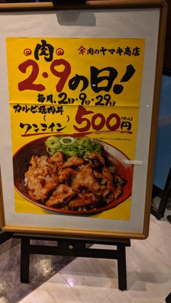 29日だけで無くて 2日 9日もニクの日になるんですね ワンコインのどんぶり イイですね! けっこう腹イッパイになります イオンのフードコートの ケンタの隣の店です ビバホームはカレーしかないので カレーも美味いですね