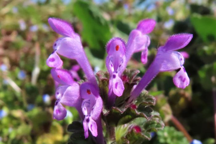 川岸や田んぼの畦を一面に飾っている「ホトケノザ」