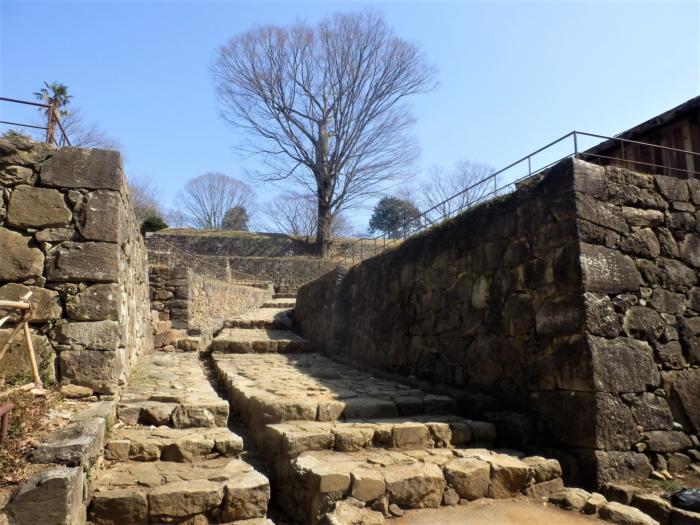 高く積まれた石垣で守られている一大防御拠点の「大手虎口」