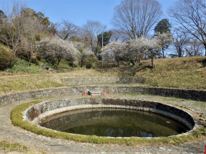 金山城三の丸跡にある「日の池」戦利や雨乞などを行った神聖な池