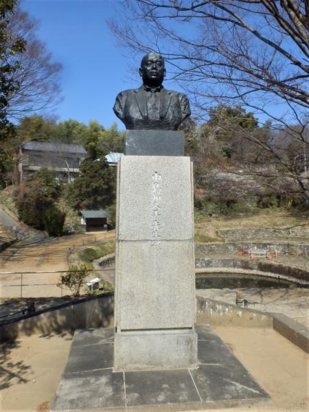 金山山頂部に設置されている中島飛行機の創業者「中島知久平」の銅像