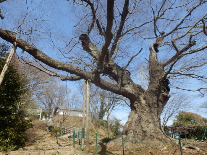 金山山頂にある樹齢約800年、樹高約17m、目通り周約7mの「大ケヤキ」