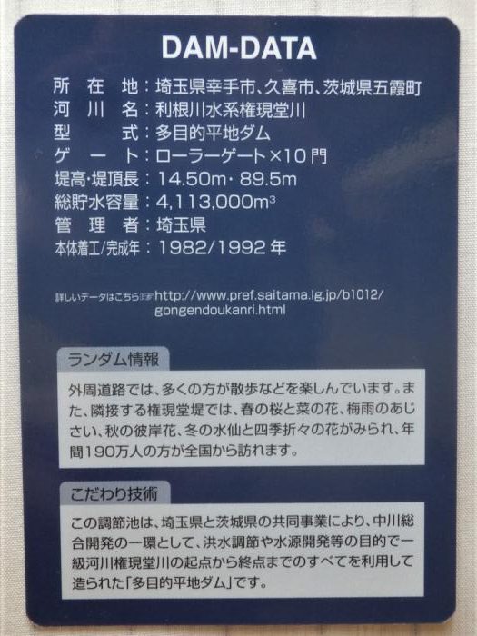 桜めぐり第三段として今回は見頃を迎えた権現堂桜堤、権現堂調整池桜並木、大排水路桜並木を散策を兼ねて観に行って来ました、散策の序でに権現堂調整池管理事務所に立寄りダムカードを頂いた、今までコロナの関係で配布が中止されていましたが念願かなって入手する事ができた、幸手権現堂桜堤以外は静かな桜鑑賞が出来ました。