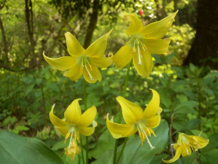 キバナカタクリはアメリカやカナダの山地に自生するカタクリで、日本には園芸用として入ってきた品種で、セイヨウカタクリとかヨウシュカタクリとも呼ばれています、日本原産のカタクリとは別種ですが、キバナカタクリもユリ科カタクリ属の多年草です。