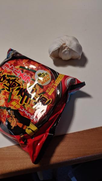 目一杯ニンニク! 一応野菜たっぷり 誰も居ないんで 家じゅうニンニクの臭いに しばらくぶりに ニンニクイッパイのラーメン定食! しばらくニンニクくさいですね!
