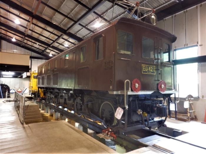 国産第一号のアプト式電気機関車ED42型一号機関車(重要文化財)