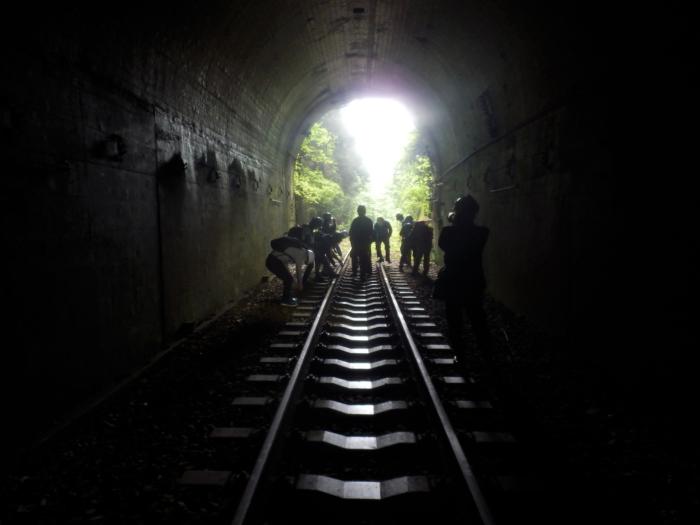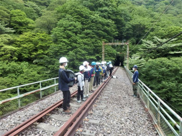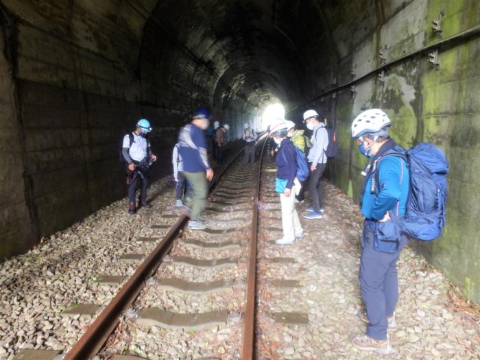 下り線5号トンネルで線路について説明を聞く
