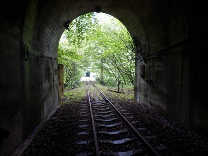 廃線ウォーク下り線軽井沢側終点の第18号トンネル出口(軽井沢駅まで約10分)