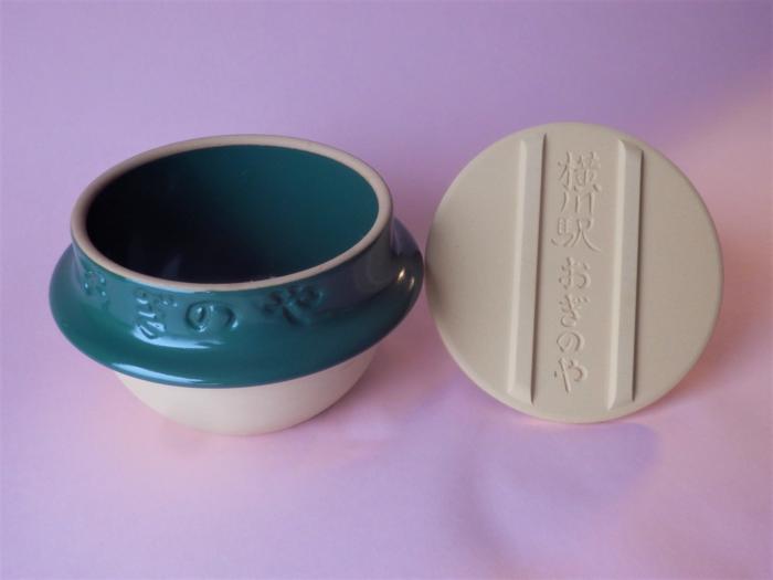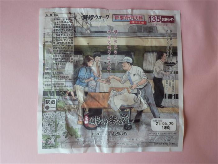 容器の色が緑、ラベルが廃線ウォーク仕様の廃線ウォークオリジナル「峠の釜飯」
