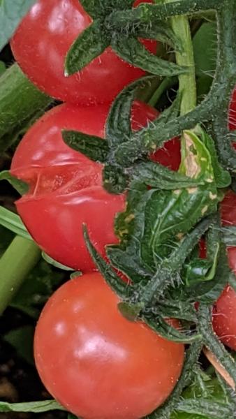 赤くなったら収穫ですよ。裂果は、熟すころに水をやりすぎると起きます。露地栽培では、赤くなり始めたころに雨が降ると割れますね。雨除けをする人もいます。だから、プロの農家さんは、ハウス栽培が多いですね。 返信する