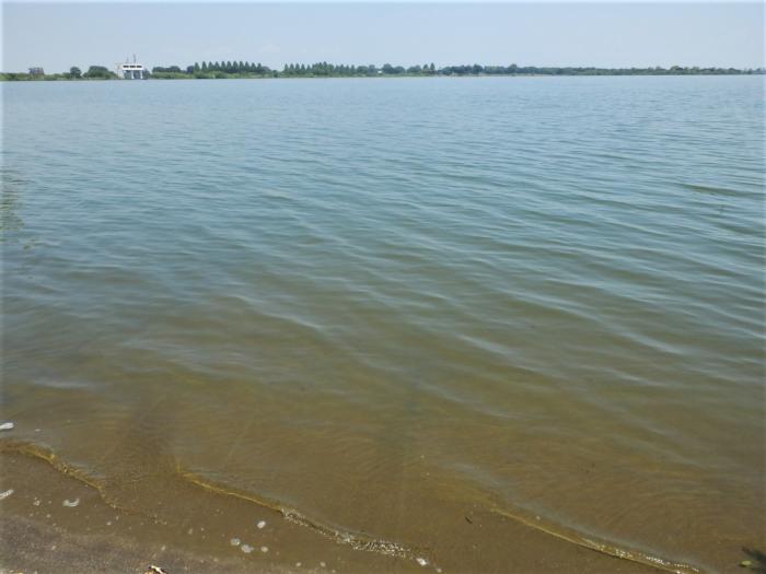 溢れんばかりに満々と水を蓄えている「谷中湖」北ブロック