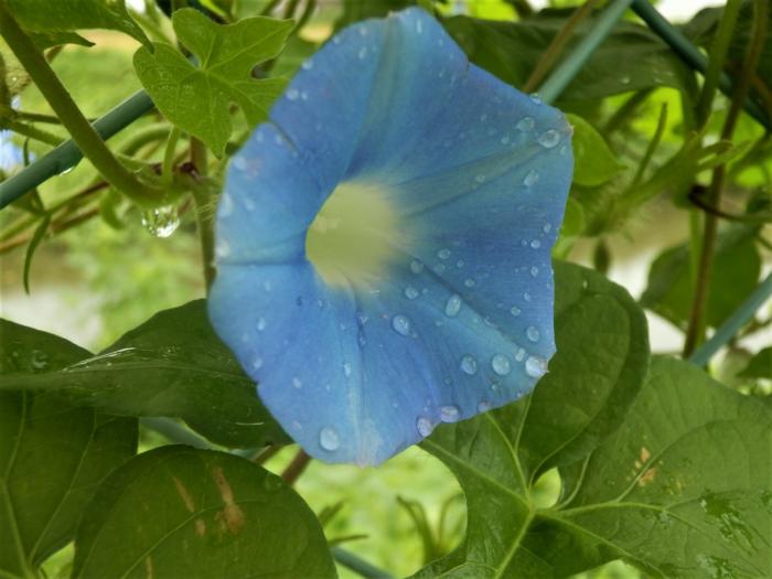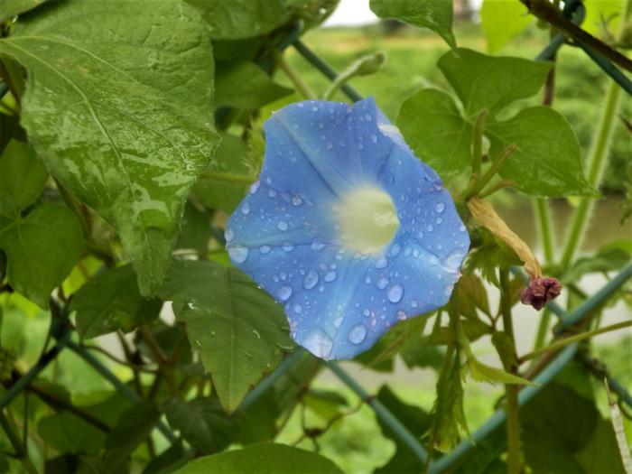雨に濡れた朝顔きれいですね。