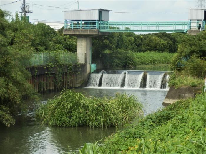 宮代町和戸地区に流れる備前前堀川に架かる万年堰、お米つくりの最終耕に合わせて水位を上げる為堰を閉じているので滝のような流れが見えます、来月になりますと流量も減り堰が開きますのでこの景色は見る事が出来なくなります。