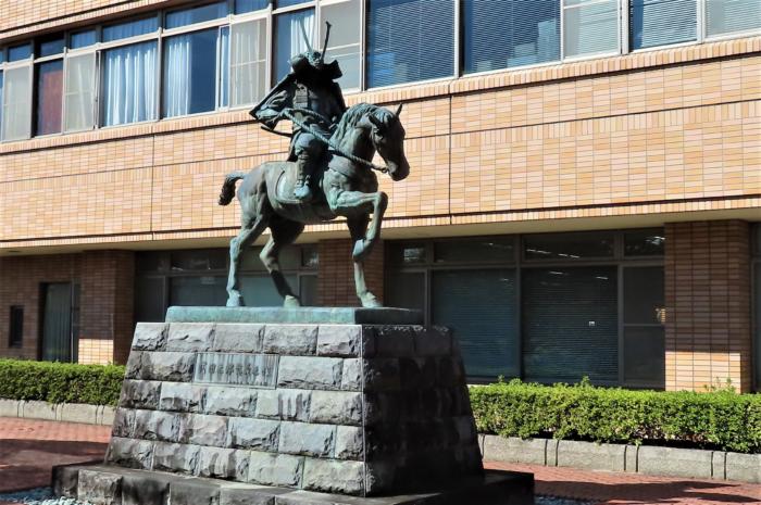 甲斐武田家の祖、「武田信義公」騎馬像 市制施行30周年記念で設置された