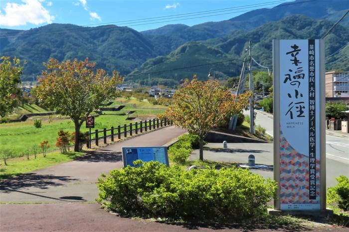 大村智博士がノーベル賞受賞記念として甘利沢川沿いに設けられた「幸福の小径」豊かな自然と眺望に恵まれた公園です