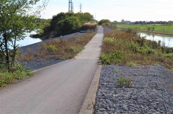 芝川第一調整池にある「越流提」洪水時に川と調整池間を自然に水のやり取りをします