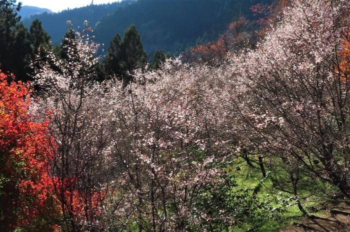 埼玉県神川町へ紅葉と冬桜を共に鑑賞できる城峯公園へ行って来ました、薄紅色の小さな花を咲かせ、周囲の紅葉した木々と共に素晴らしい景色を見せていました。さらに近くにある下久保ダムと巨岩奇石で知られた三波石峡へも立ち寄りました。